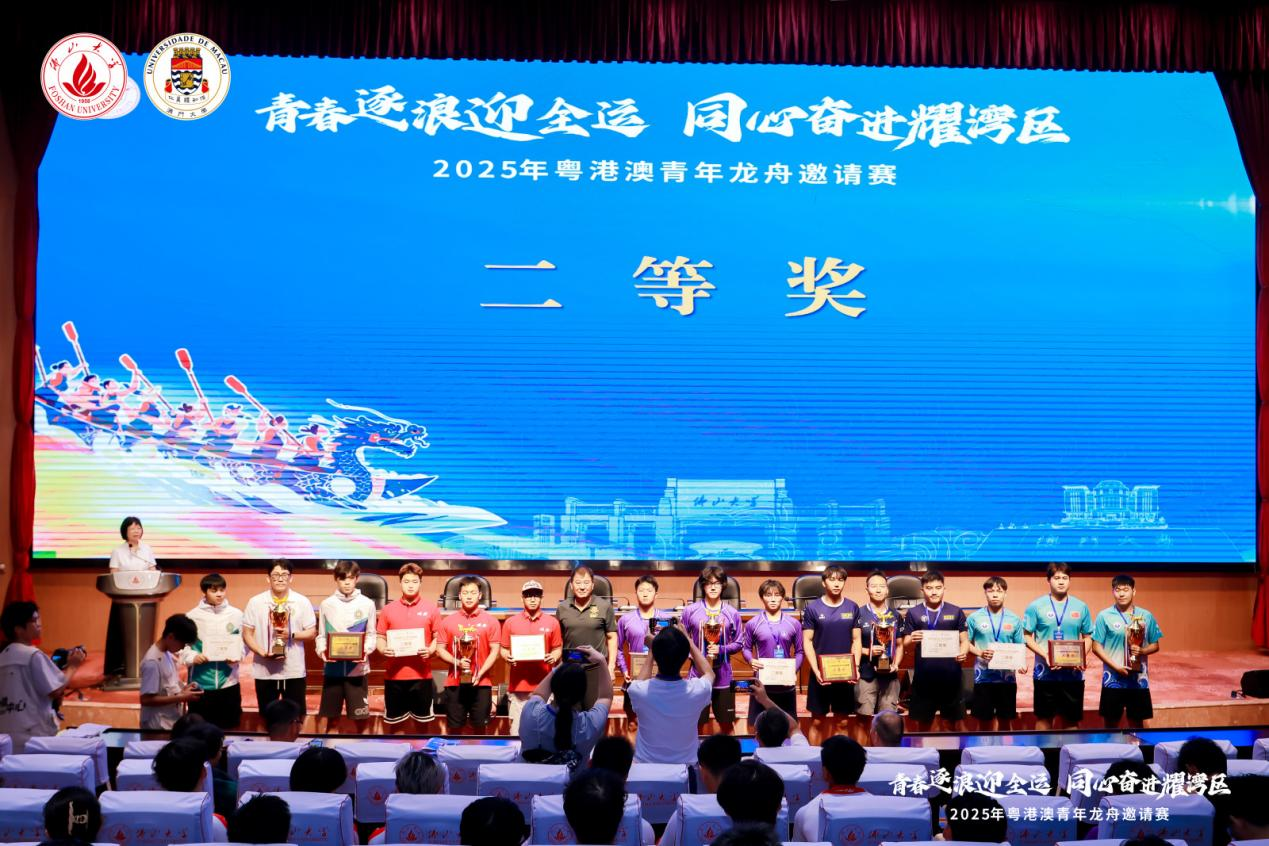 本次赛事由佛山市委台港澳工作办公室、广东省龙舟协会、粤港澳大湾区体育教育与发展联盟联合举办,汇聚了华南师范大学、南方医科大学、佛山大学、香港浸会大学,澳门大学、澳门理工大学、澳门城市大学等14支高校龙舟队伍。本次龙舟邀请赛采用200米与500米直道赛双项积分制。在阵阵催人奋进的锣鼓声中,各支参赛龙舟队展开了激烈角逐。广航院龙舟队学生们毫不畏惧,化压力为动力,展现了惊人的耐力和爆发力,与邻道对手展开贴身较量,最终以200米第四名,500米第六名将总成绩第五名的荣誉收入囊中,为学校争得了荣誉,展现了广航青年蓬勃向上的朝气和锐意进取的勇气。
