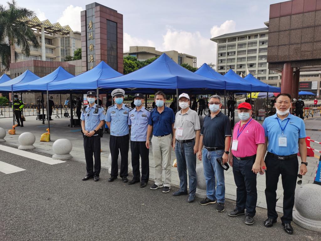 考试期间,黄埔区副区长刘石、区教育局(体育局)党组书记、局长何宇鸿等领导来我校巡视,对我校考试组织和管理工作给予指导和充分肯定。黄埔区公安分局派出交警、巡特警协助疏导交通和维持秩序,区卫健部门派出医生驻点指导应急防护工作;黄埔区相关部门的大力支持和配合进一步保障了考试顺利安全举行。